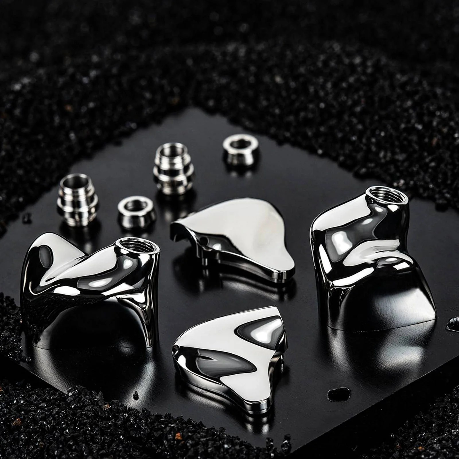 They are then polished by hand to achieve a luxurious mirror finish that gives the pair their final look. The ear cups are made of solid 904L stainless steel. These are the first earpieces on the market made from 904L stainless steel. Finally, the earpieces are treated with a DLC (diamond-like coating) to preserve their appearance and improve durability.