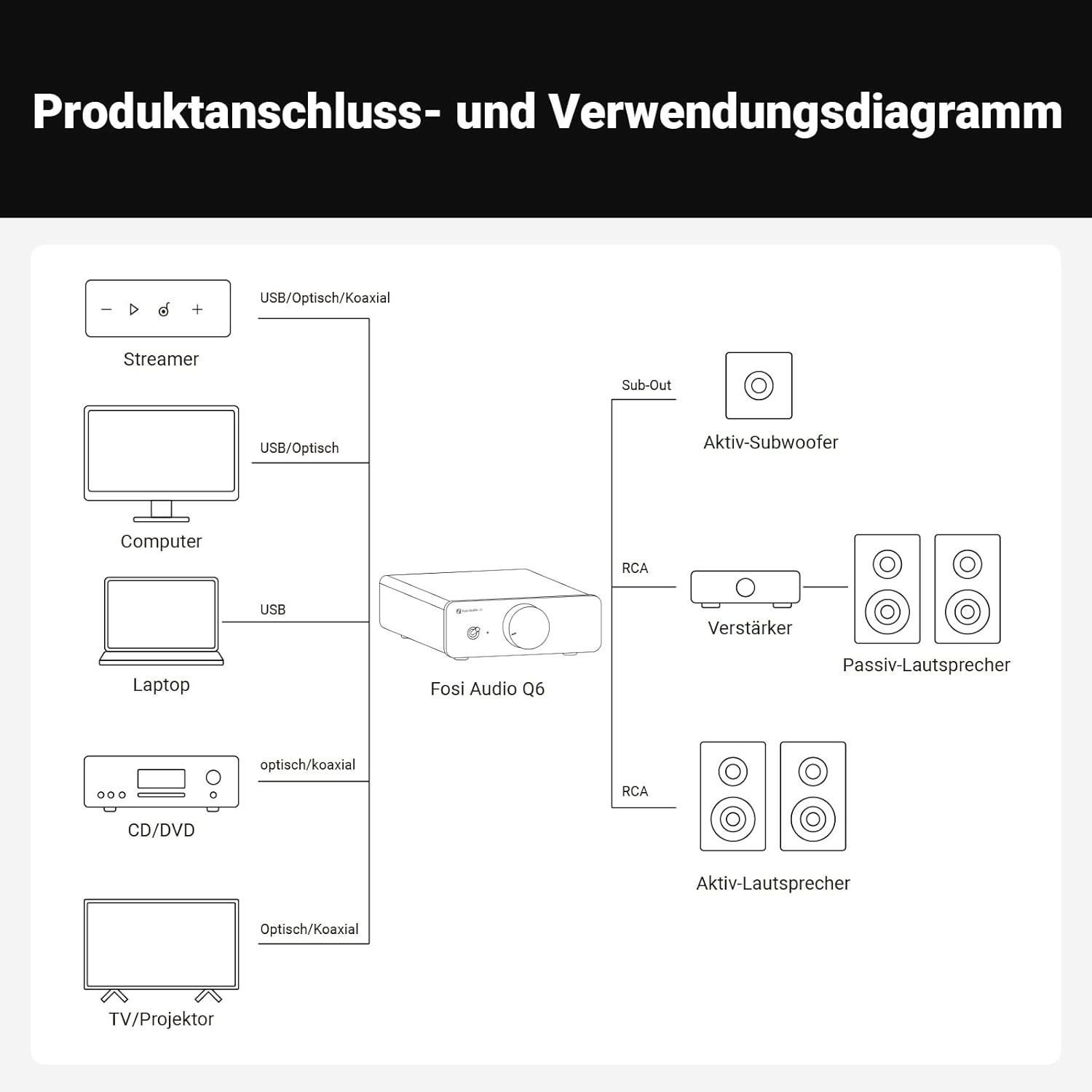 • Umfassende Konnektivität: Mit optischen, koaxialen und USB-Eingängen sowie Cinch- und Sub-Out-Ausgängen lässt sich das Gerät nahtlos mit PCs, Macs, Fernsehern, CD-Playern, Tablets und weiteren digitalen Quellen verbinden. Die einfache Plug-and-Play-Einrichtung macht die Integration mühelos.