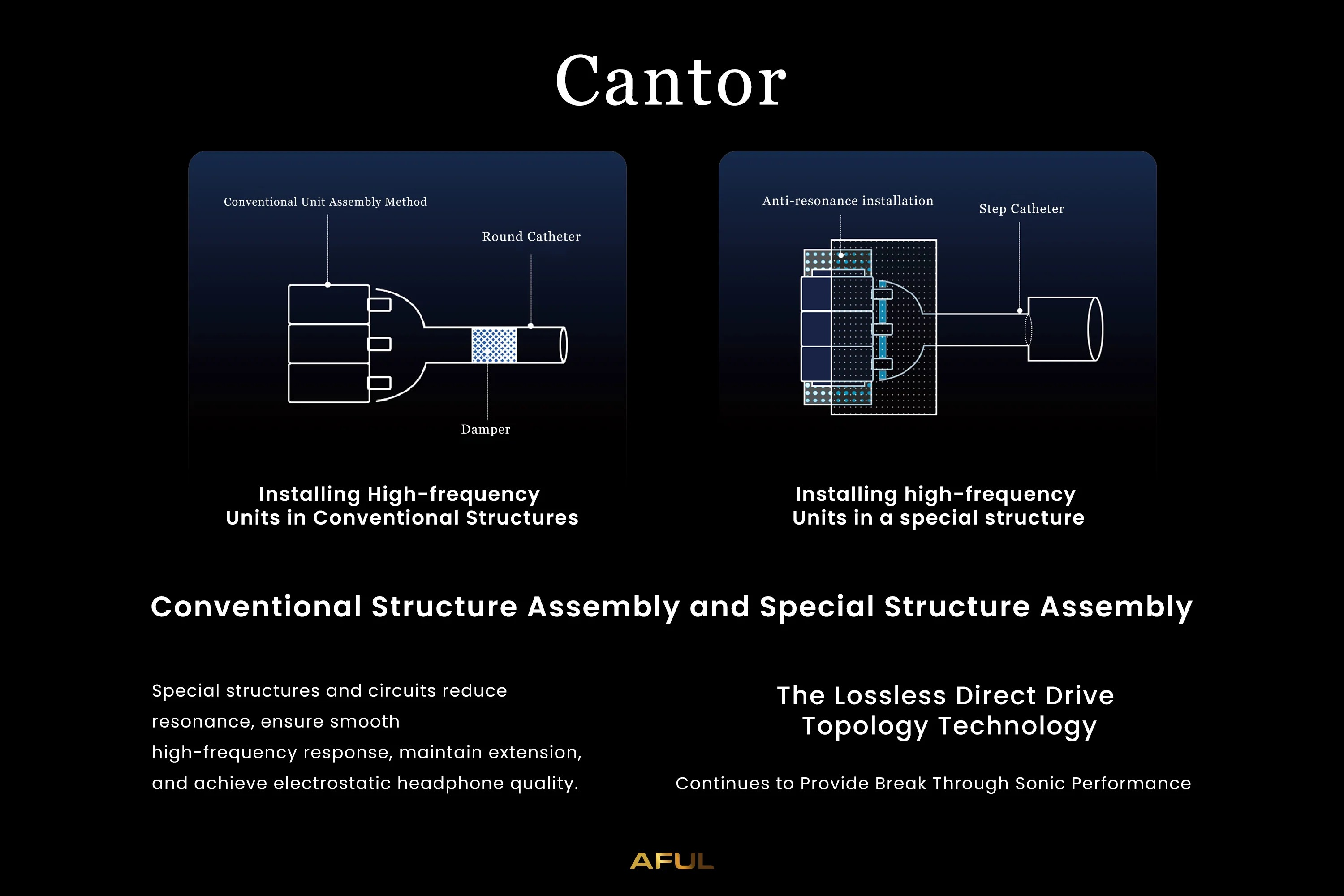 Der AFUL Cantor verwendet eine speziell entwickelte akustische Struktur zum Einbau von Hochfrequenzeinheiten, die strukturelle Resonanzspitzen reduzieren kann.
