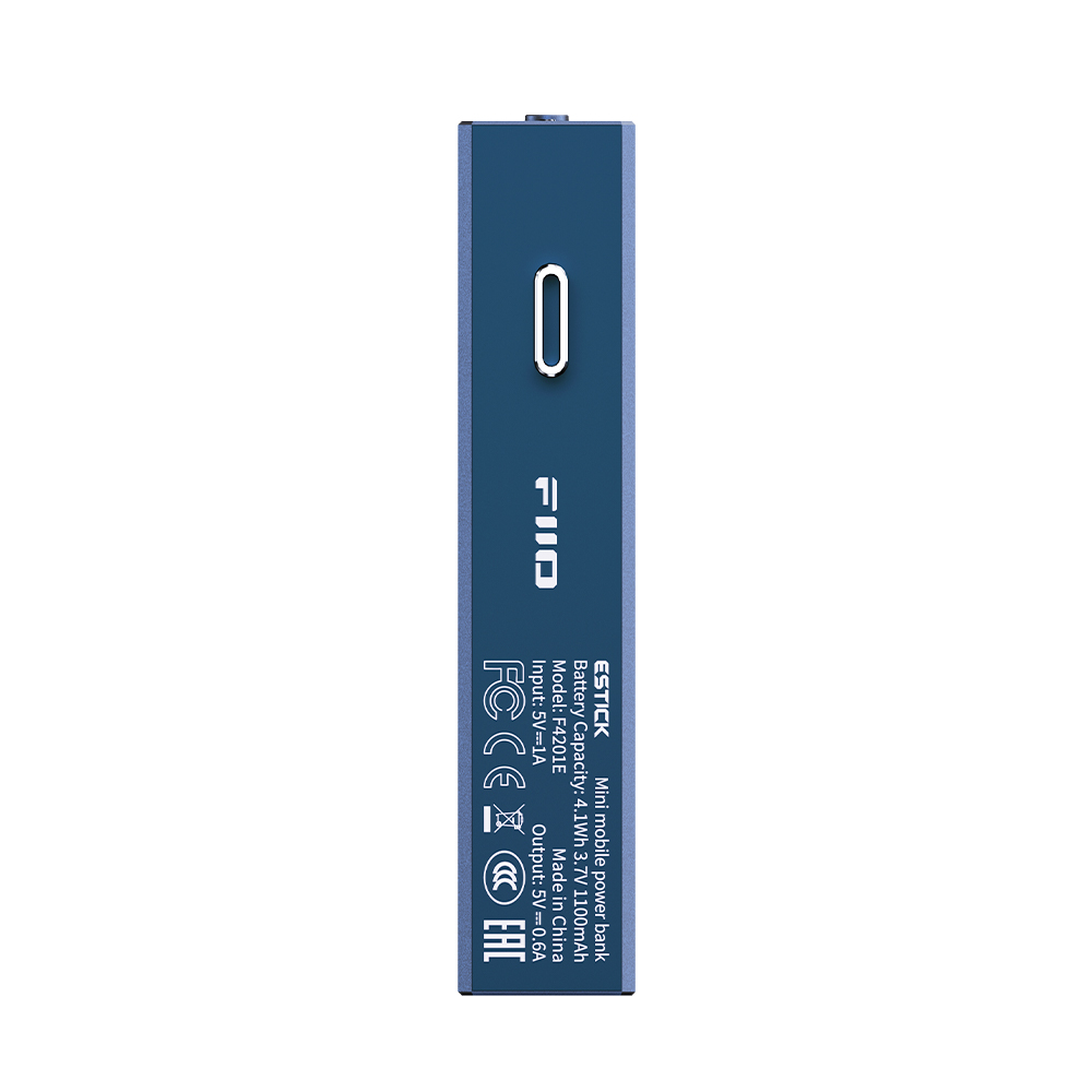 Um eine übermäßige Belastung des Akkus Ihres Smartphones zu vermeiden, hat FiiO Electronics Technology die FiiO ESTICK Mini Power Bank eingeführt, die speziell für den FiiO KA17/FiiO QX13 entwickelt wurde. Diese Powerbank wird über USB-C direkt mit dem FiiO KA17/FiiO QX13 verbunden, wodurch das Gerät nur geringfügig breiter wird und die Kombination kompakt bleibt. Die FiiO ESTICK Mini Powerbank verfügt über einen 1.100-mAh-Akku, der 5 V und 0,6 A liefert. Dieser Akku kann die Stromversorgung des KA17 um bis zu fünf Stunden verlängern.