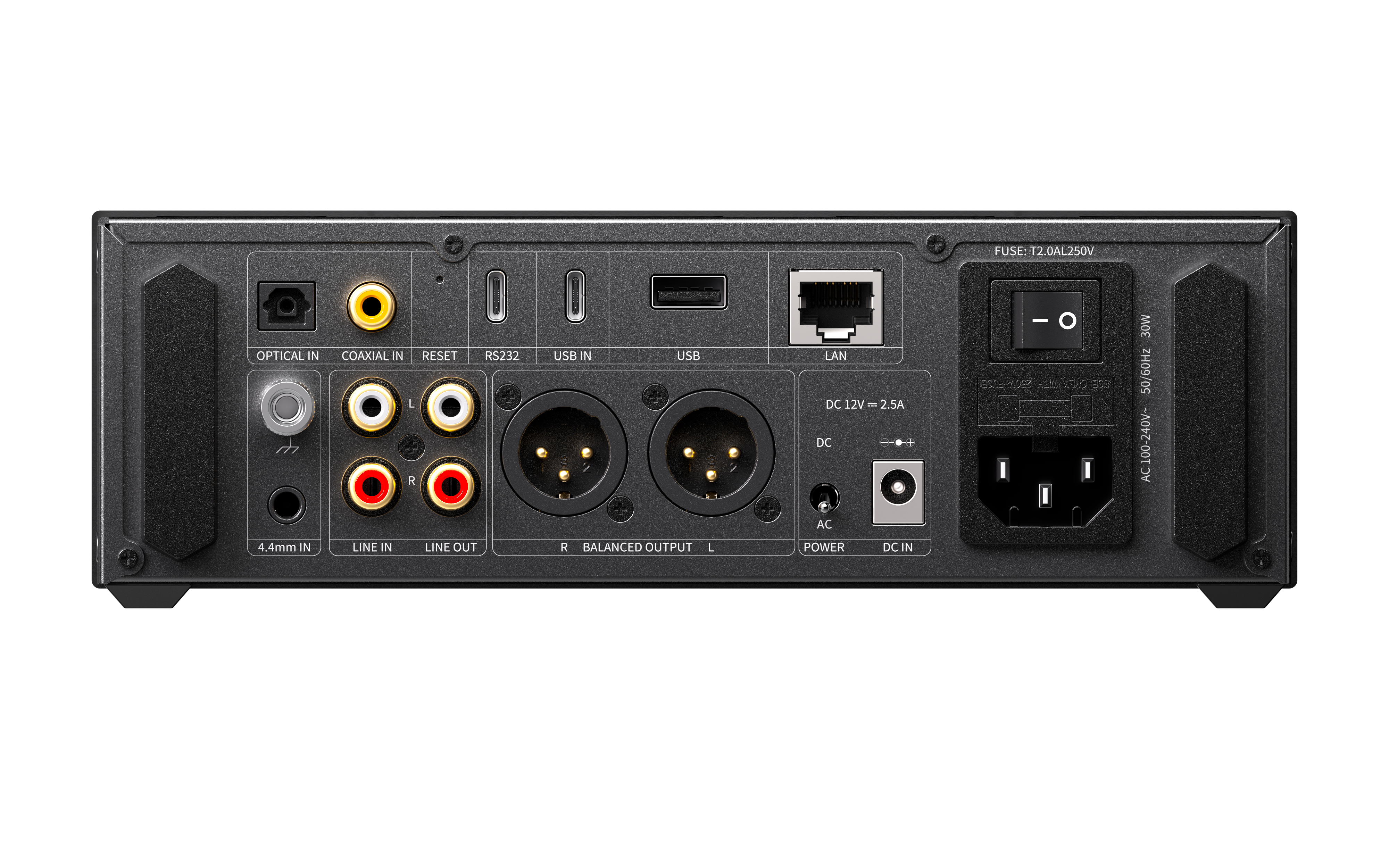 - Vollständig symmetrische Audioschaltung vom Eingang bis zum Ausgang