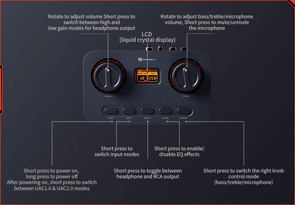 Ausgestattet mit dem AK4493S DAC, dem XMOS XU208 USB-Prozessor und dem TPA6120 Kopfhörerverstärker unterstützt der K7 hochauflösende Dekodierung bis zu PCM 384kHz/32bit und DSD256. Mit einer Ausgangsleistung von bis zu 2100 mW kann er auch anspruchsvolle Kopfhörer problemlos ansteuern.