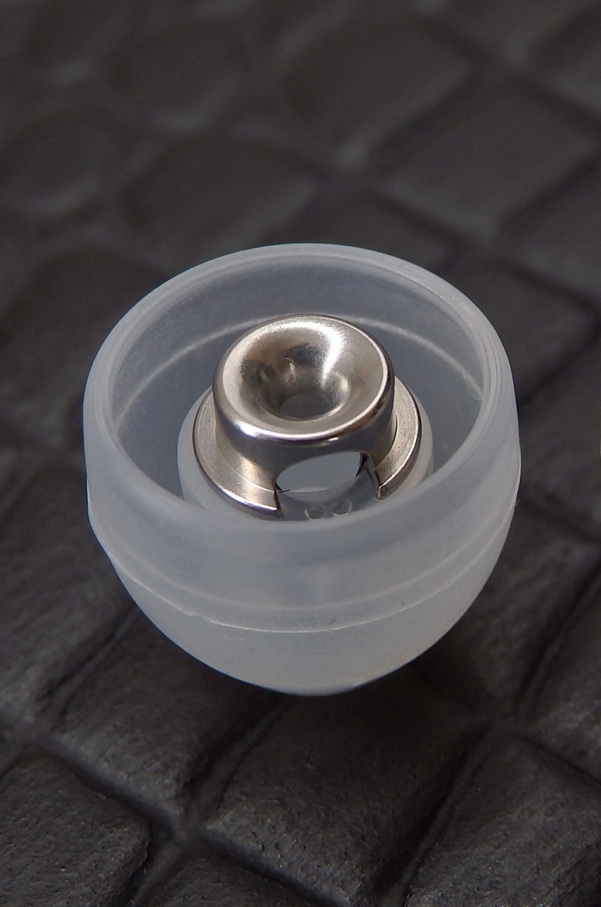 Das Hauptmerkmal ist der sogenannte Phasenstecker, ein Aufsatz, der an den becherförmigen Ohrstöpsel angebracht wird.