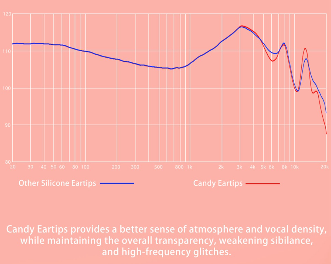 Dunu Candy Eartips sorgen für ein besseres Gefühl von Atmosphäre und Stimmdichte, während die Gesamttransparenz erhalten bleibt und Zischlaute sowie hochfrequente Störungen abgeschwächt werden.