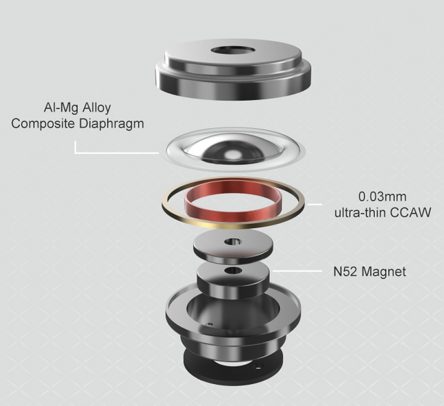 Moondrop hat den in den ursprünglichen Chu IEMs verwendeten Treiber überarbeitet und den Chu II mit einer hochwertigen Aluminium-Magnesium-Verbundmembran und einer ultradünnen CCAW-Schwingspule ausgestattet. Diese Kombination, zusammen mit der hohen Steifigkeit und dem geringen Gewicht der Membran, sorgt für verbesserte Höhenerweiterungen und eine druckvollere Basswiedergabe. Der Moondrop Chu II setzt einen neuen Standard als erster preiswerter IEM mit einer AL-Mg-Verbundmembran.