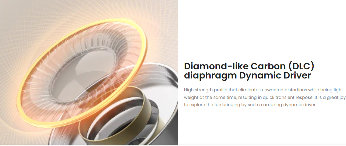 - Ergonomisches Design Dynamischer Treiber mit diamantähnlicher Kohlenstoffmembran (DLC)