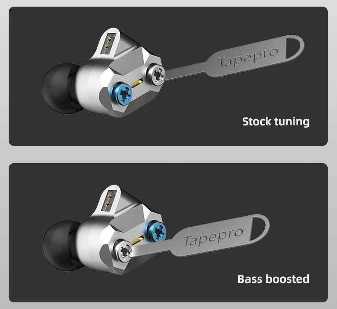 Auch wenn Tape Pro eine zufriedenstellende Abstimmung hat, möchten wir Ihnen noch mehr bieten, deshalb können Sie bei Tape Pro den Bass nach Belieben einstellen. Diese Funktion wird durch die brandneue Leitungsstruktur gewährleistet. Nur bei diesem Modell können Sie die ganz individuelle Erfahrung machen.