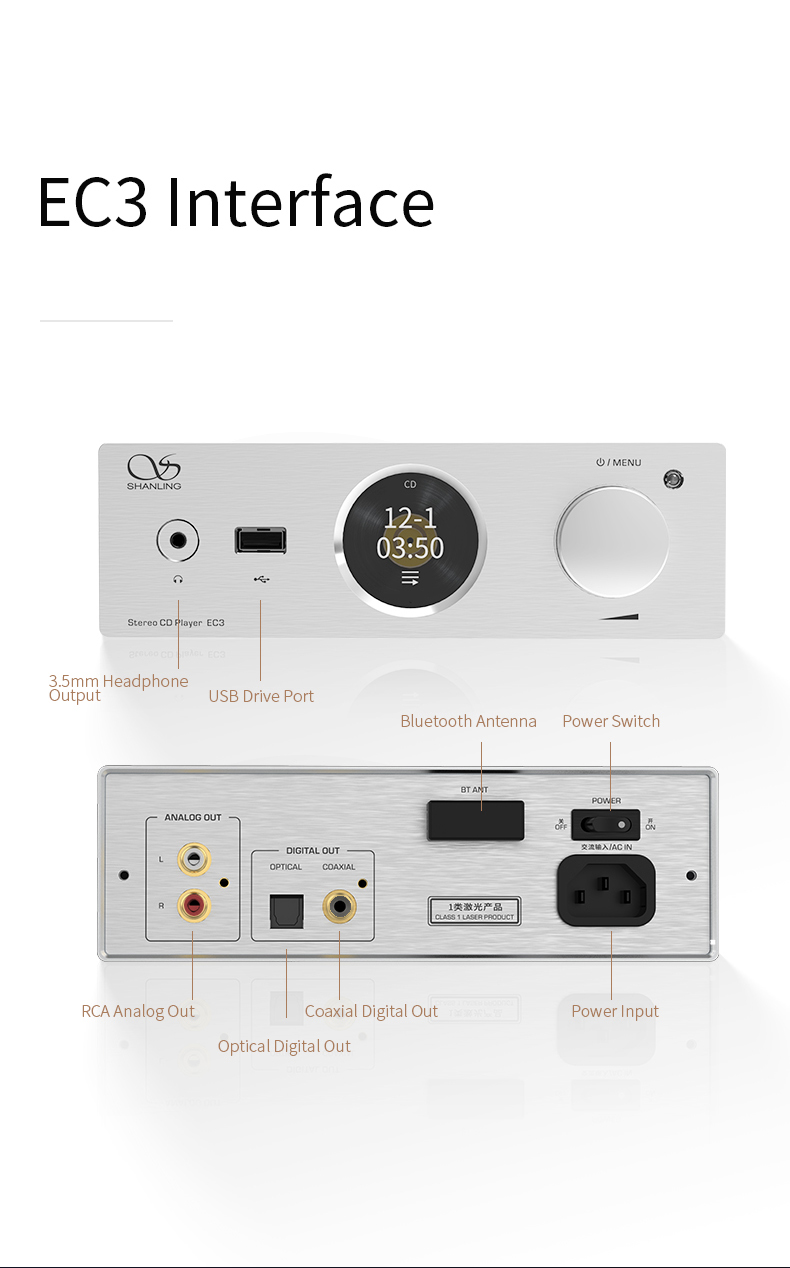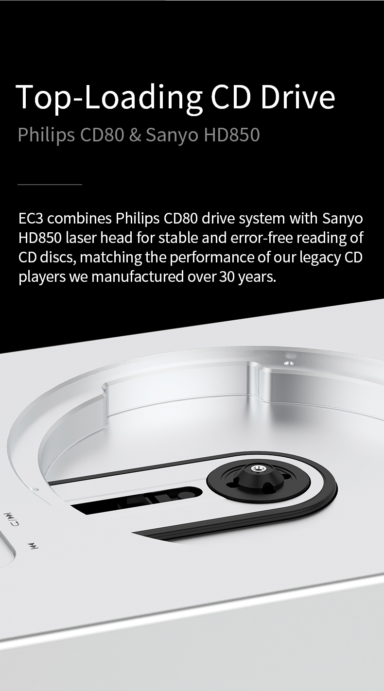 Der Shanling EC3 kombiniert das Philips CD80-Laufwerkssystem mit dem Sanyo HD850-Laserkopf für ein stabiles und fehlerfreies Lesen von CD-Discs. Er entspricht der Leistung der älteren CD-Player, die Shanling seit über 30 Jahren herstellt.