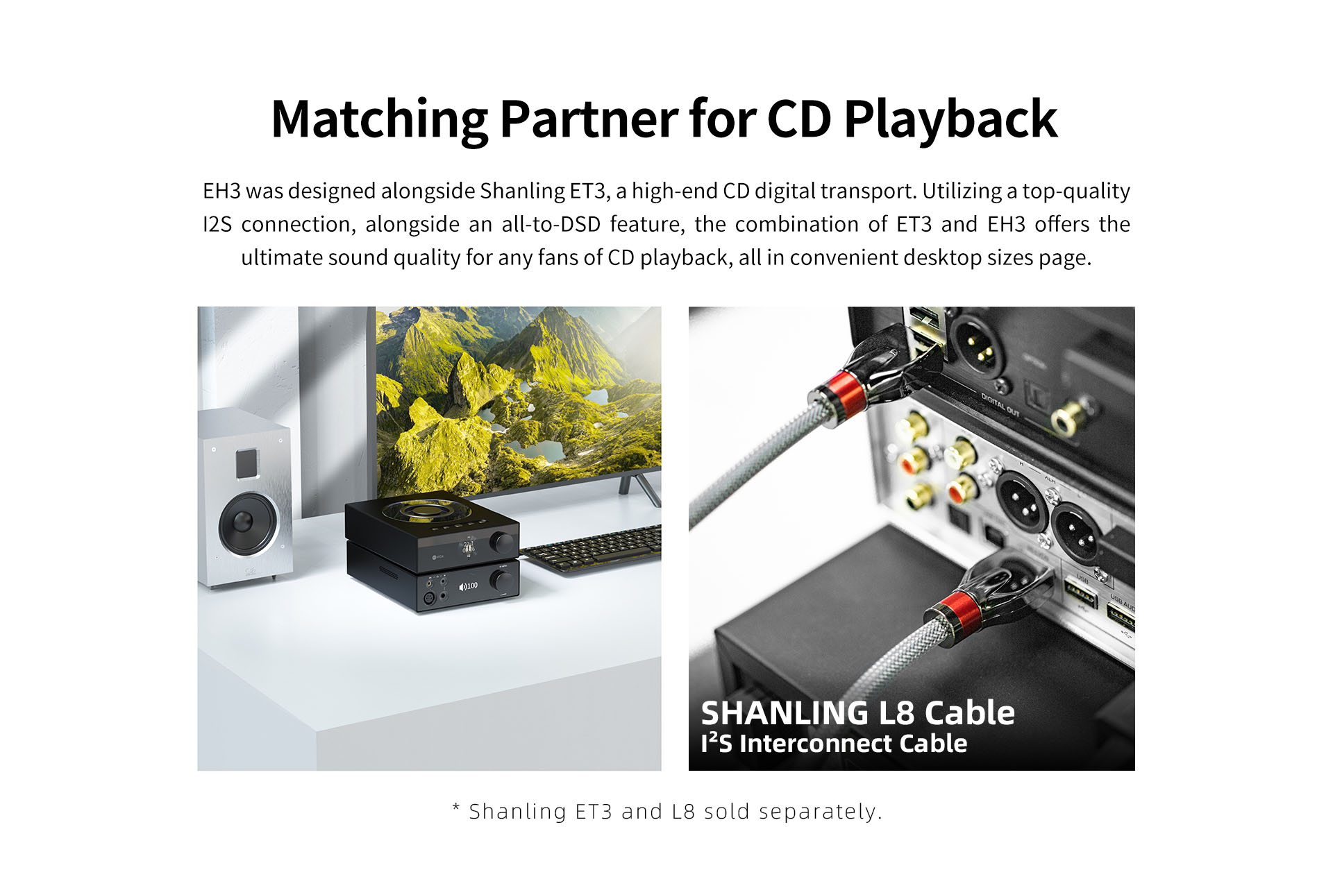EH3 und ET3 können über die hochwertige I²S-Verbindung und das neue L8-Kabel nahtlos miteinander verbunden werden, um das ultimative CD- und MQA-CD-Wiedergabeerlebnis zu ermöglichen, und wurden als Ergänzung zu unserem ET3 CD-Transport konzipiert.