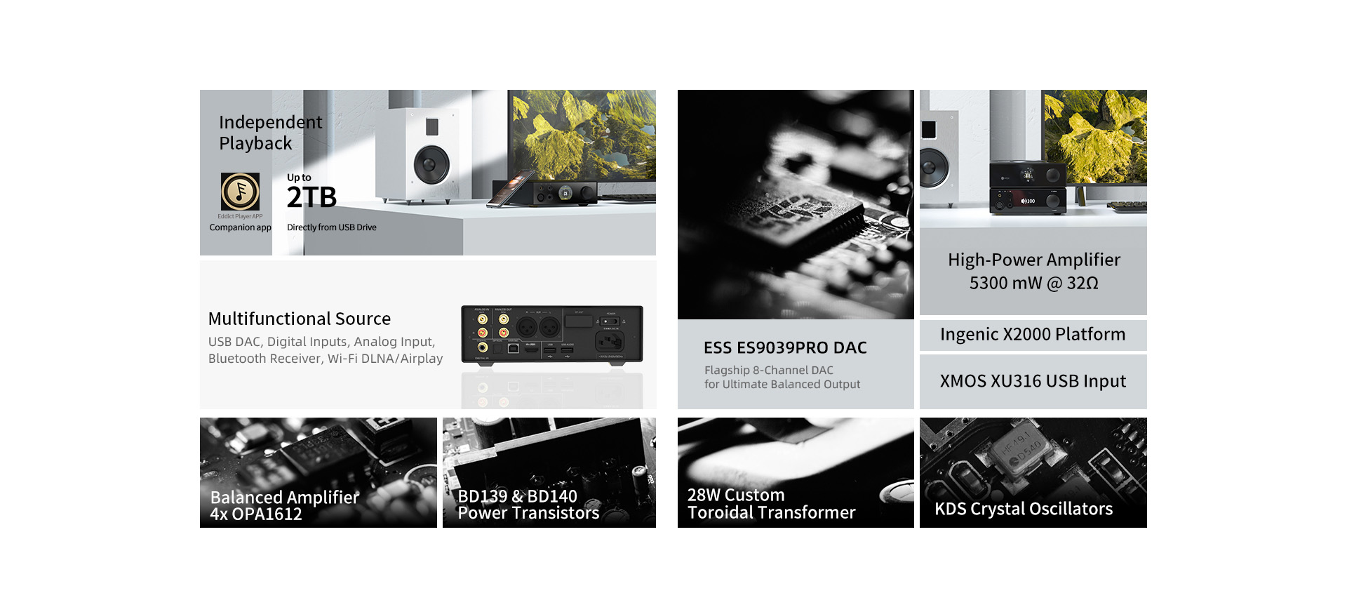• Bluetooth 5.0 / WiFi / DLNA / Airplay / USB Drive Port