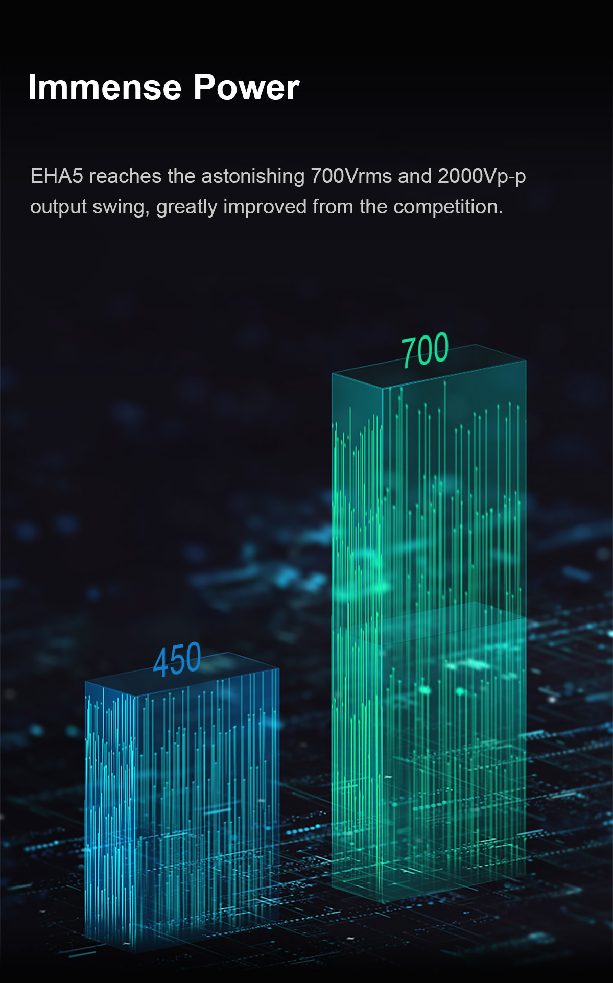 - Leistungsstarke 700Vrms und 2000Vp-p Ausgangsspannung und 146dBSNR