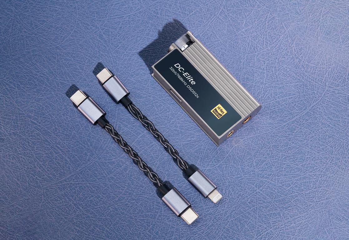 DC-Elite, USB-C-Kabel, C-auf-Lightning-Kabel, USB-C-auf-USB-A-Konverter, Ledertasche und Benutzerhandbuch