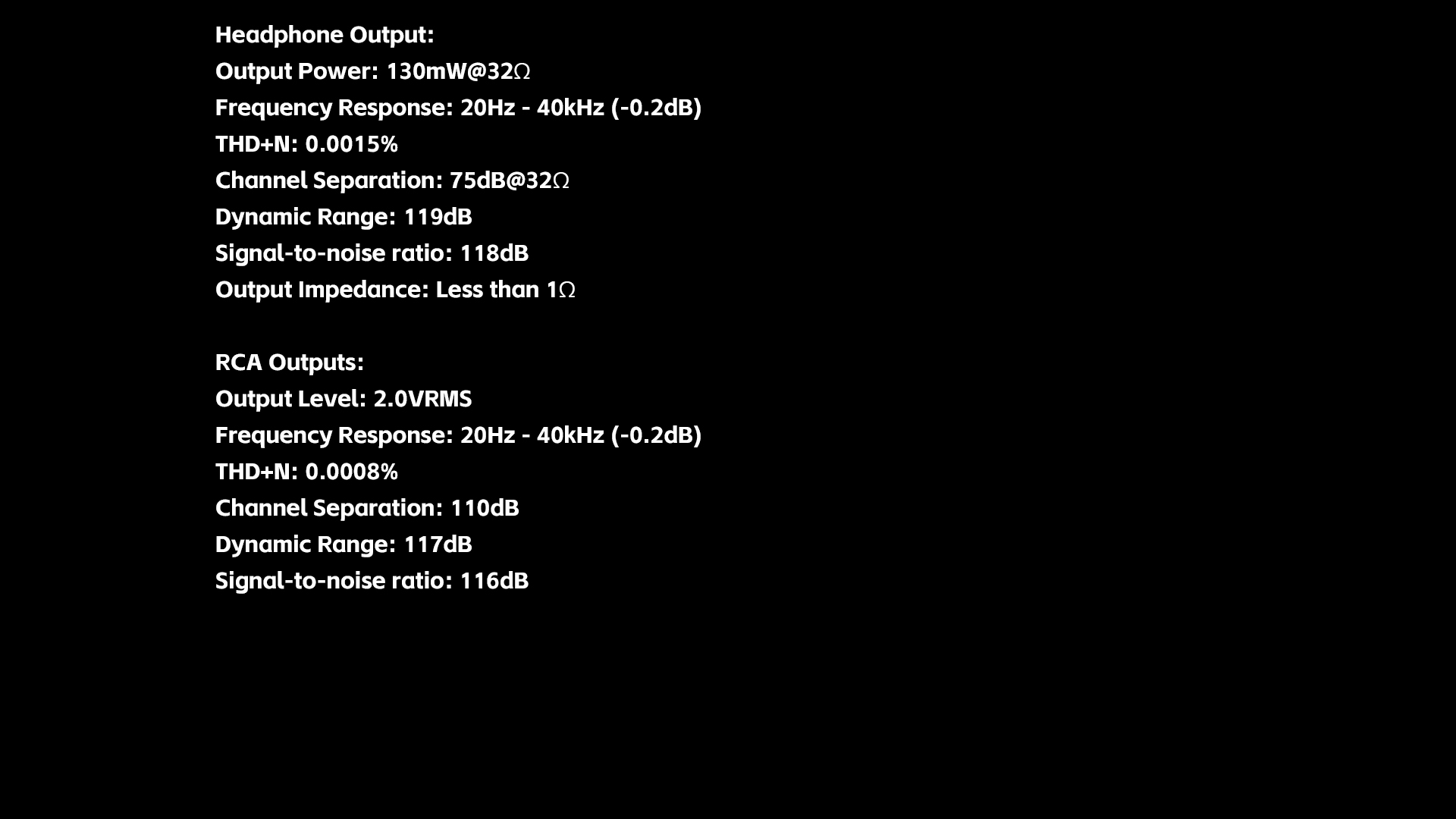 - Ausgangsleistung: 130 MW bei 32 Ω
