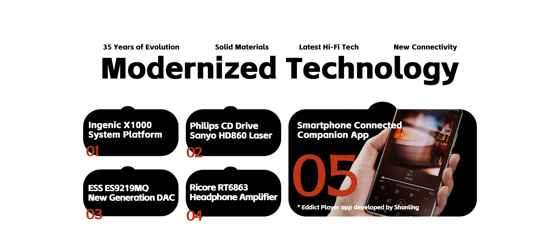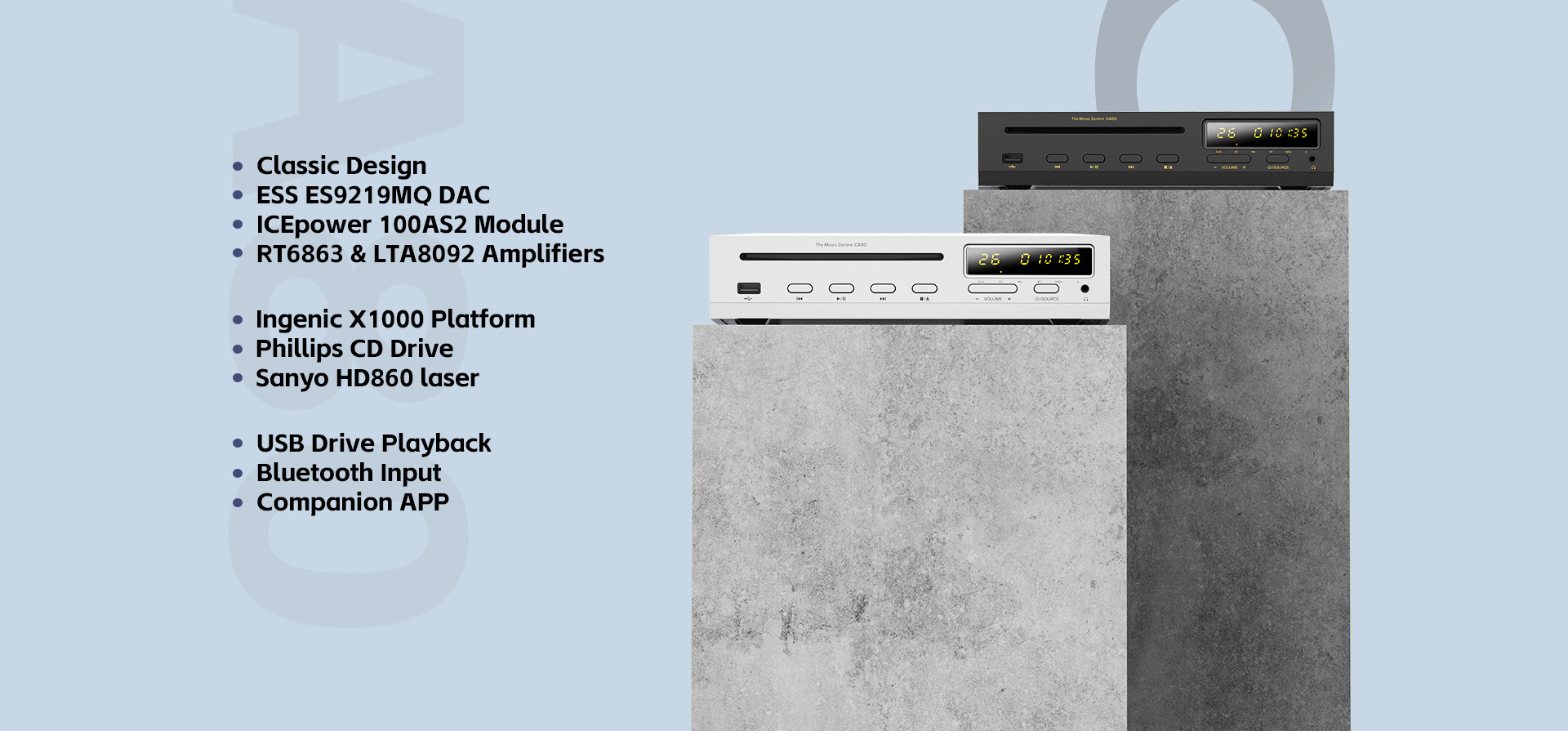 Das Herzstück des CA80 ist ein Philips CD-Laufwerk und die Sanyo HD860 Lasertechnologie, die eine konsistente und optimale CD-Audiowiedergabe gewährleisten. Dies wird noch verstärkt durch die Integration in die Ingenic X1000 Systemplattform, die den Player mit effizienten Verarbeitungsfunktionen und nahtloser Bedienung ausstattet. Als Beweis für seine modernen Fähigkeiten unterstützt der CA80 die Wiedergabe von USB-Laufwerken mit beeindruckenden Abtastraten von bis zu 32/384 kHz und DSD256-Audioformaten. Darüber hinaus erfüllt er mit Bluetooth 5.0 und der Unterstützung von LDAC- und AAC-Audiocodecs die Anforderungen an moderne Konnektivität und ermöglicht mühelose drahtlose Verbindungen zu Kopfhörern und Lautsprechern.
