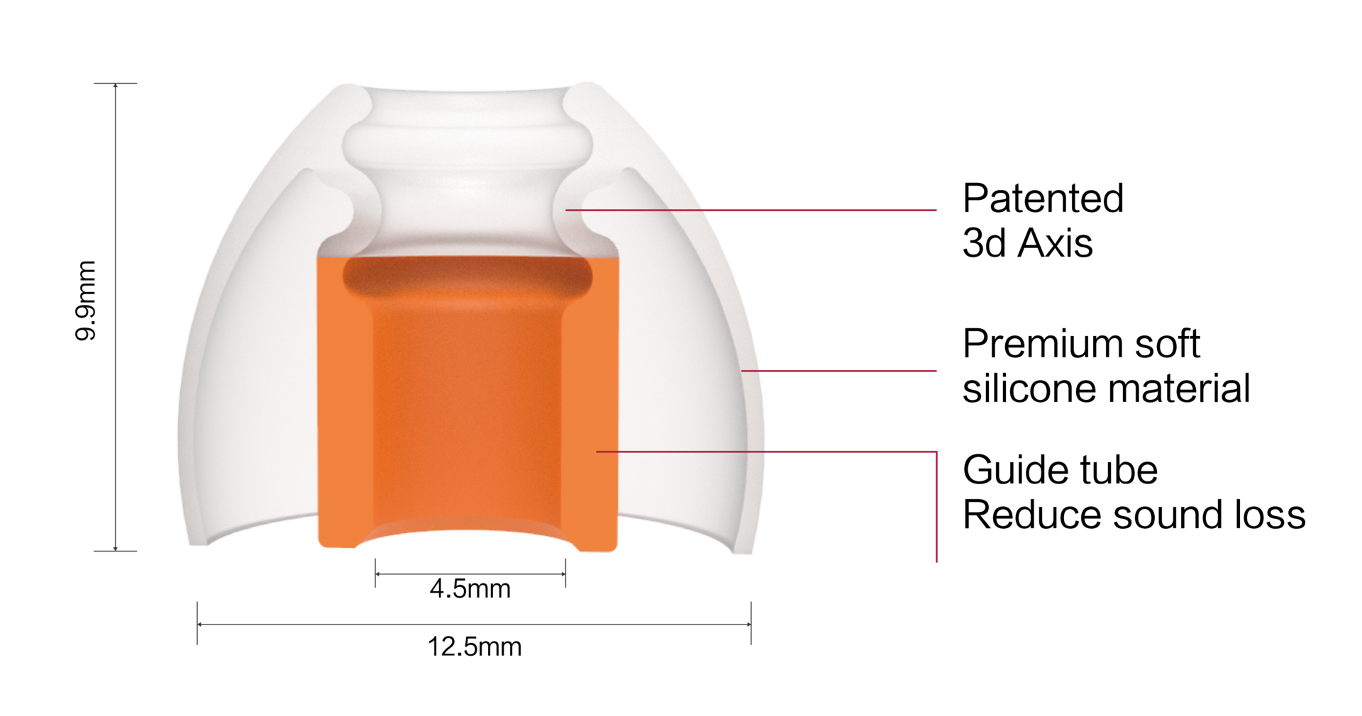 - Ergonomisches Design mit der Fähigkeit, sich im Gehörgang in alle Richtungen zu drehen und individuell anzupassen.