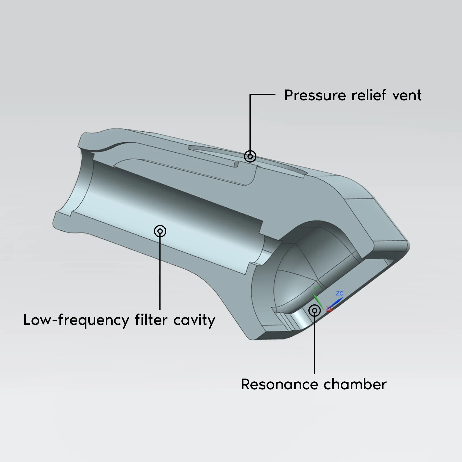 Das proprietäre PBS von THIEAUDIO wurde entwickelt, um ein echtes Subwoofer-Erlebnis in einem IEM zu emulieren. Dieses innovative System verfügt über eine sorgfältig konstruierte Resonanzkammer und einen Tieftonfilter, wodurch ein präziser 200-Hz-Bass-Shelf erreicht und die Basswirkung bis in den ultratiefen Frequenzbereich von 5 Hz bis 20 Hz erweitert wird. Das PBS verbessert nicht nur die Basstiefe und -klarheit, sondern minimiert durch ein Überdruckventil auch die Ermüdung des Gehörs und sorgt so für exzellente Akustik und Tragekomfort.