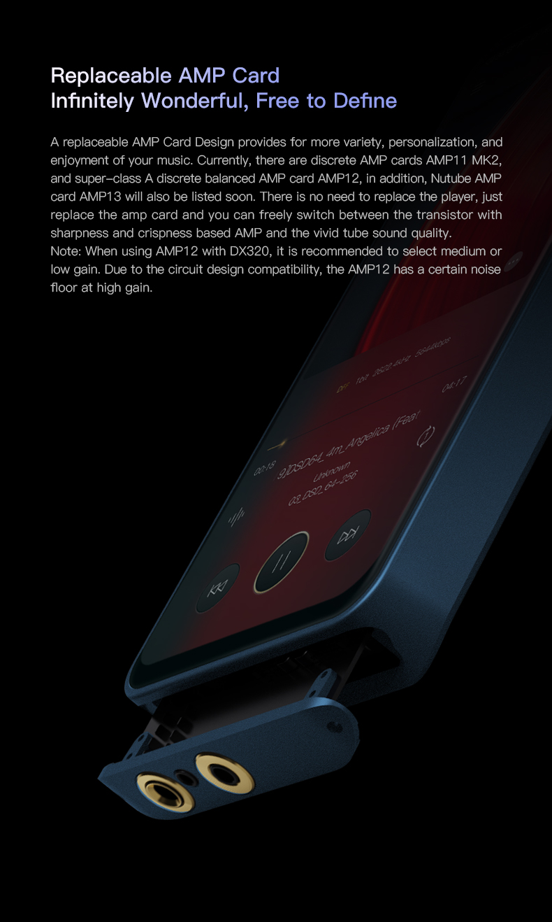 Dank der wechselbaren Amp Module lässt sich der Player an Ihre klanglichen Vorlieben und an Ihren Kopfhörer anpassen.